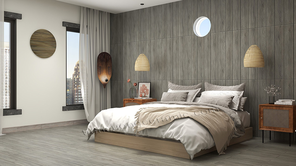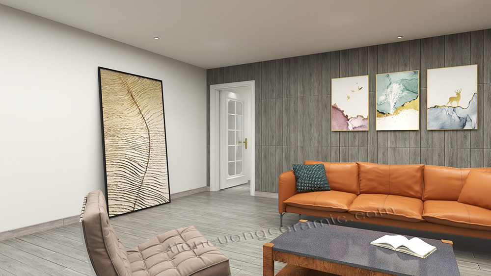 Màu xám, sắc nét, vân gỗ có độ sâu, sang trọng khi sử dụng. Sự kết hợp nội thất màu sáng với gạch vân gỗ mang lại không gian sang trọng, đẳng cấp. Phù hợp cho một số kiến trúc đặc thù như đại sảnh sân bay, nhà hàng, khách sạn.
