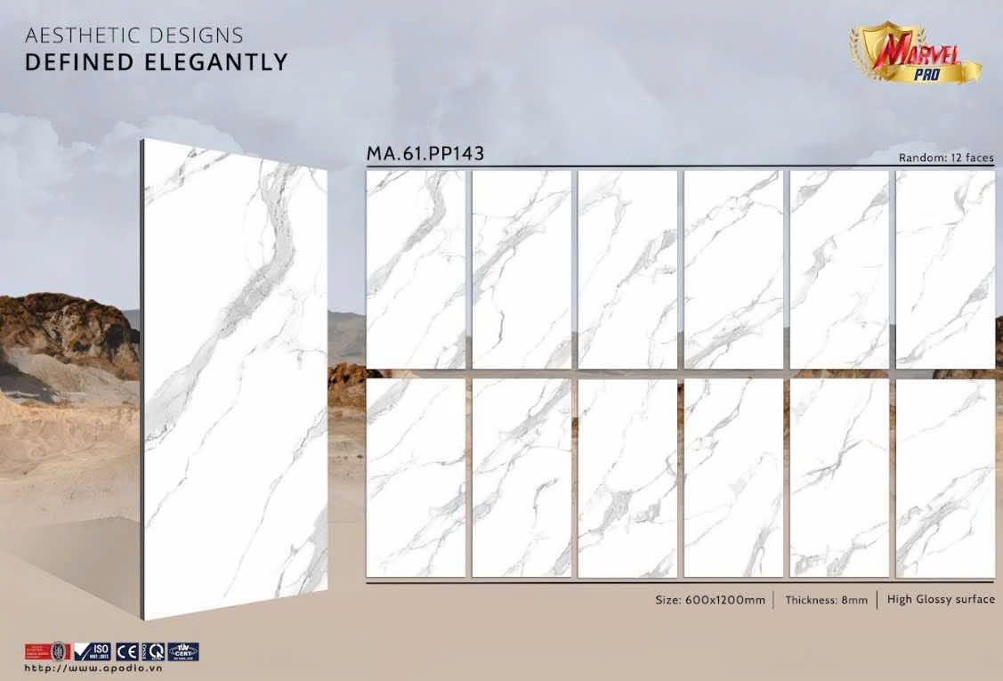 APODIO là một thương hiệu lấy cảm hứng từ vị thần đến từ đỉnh Olympia trong thần thoại Hy Lạp – APOLLO. Với những sản phẩm gạch được dày công đầu tư từ thiết kế đến công nghệ sản xuất, APODIO sẽ mang đến một không gian gần gũi với thiên nhiên, thân thiện với môi trường, mang đến cuộc sống tiện nghi hơn cho con người. Nằm trong bộ sưu tập gạch Marvel Pro , gạch ốp lát MA61PP143 là sản phẩm được người dùng ưa chuộng. Vậy sản phẩm gạch này có gì đặc biệt? Ứng dụng của loại gạch này là gì? Giá gạch Marvel Pro MA61PP143 là bao nhiêu? Tiến Cường xin mời bạn đọc cùng tìm hiểu ngay bài viết dưới đây!