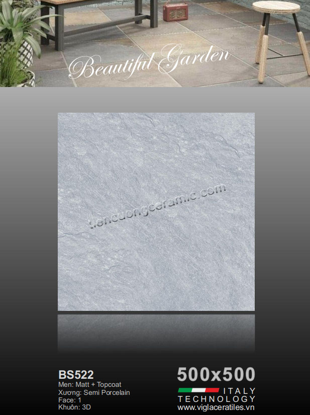 - Gạch lát nền Viglacera BS522 kích thước 500 x 500 mm có màu trung tính mang đến sự hài hòa và sang trọng cho không gian sống. Hoạ tiết tạo cho không gian cảm giác tự nhiên.
